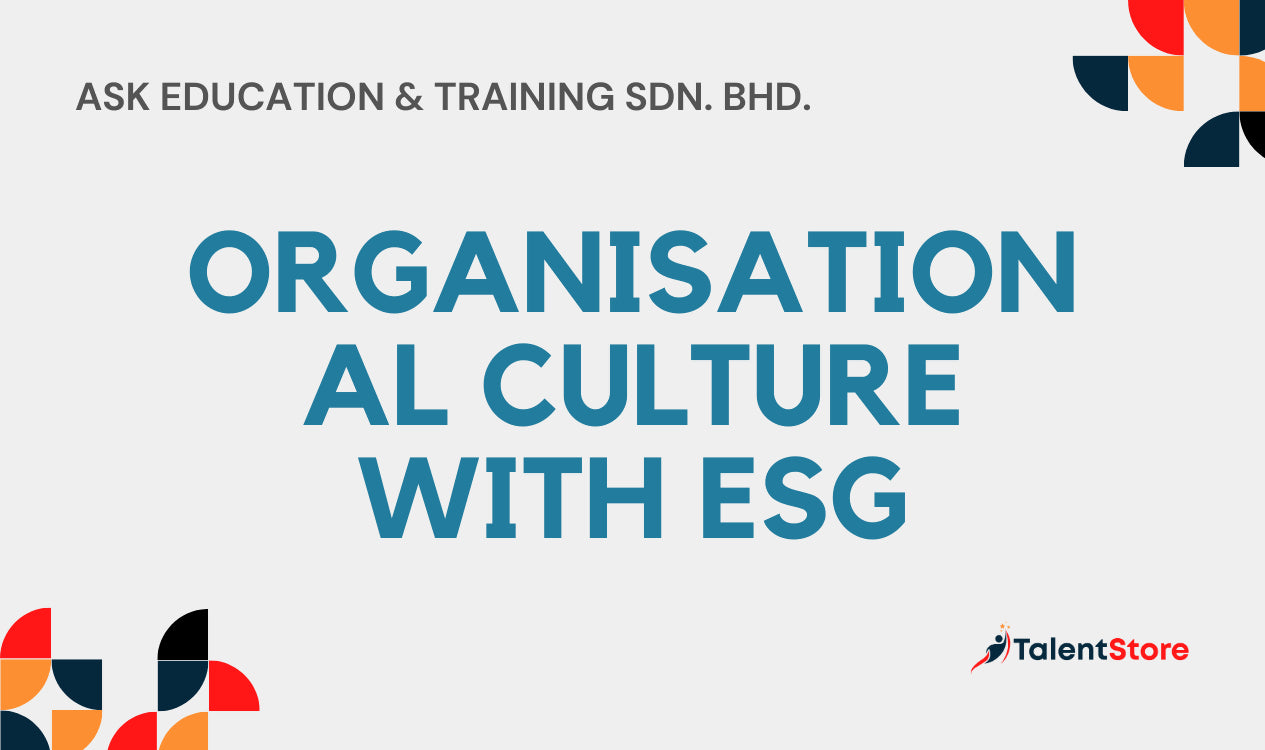 Enhance your organisation's culture with our comprehensive training program on Organisational Culture with ESG. Our expert trainers at ASK Education & Training Sdn. Bhd. in Malaysia will guide you through the importance of incorporating Environmental, Social, and Governance (ESG) principles into your company's culture. Learn how to create a positive work environment that aligns with sustainable practices and social responsibility, ultimately boosting employee morale and productivity.